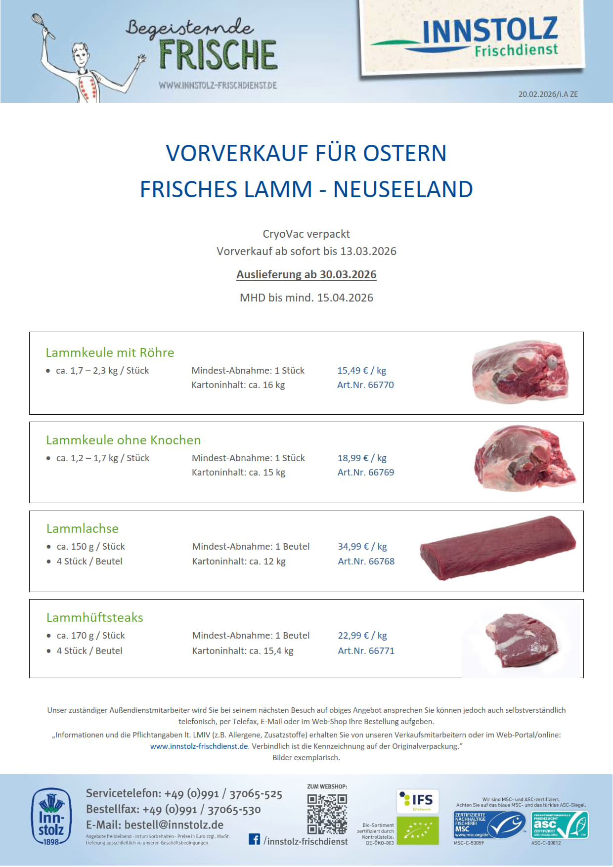 Frisches Lamm Ostern 2026