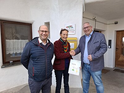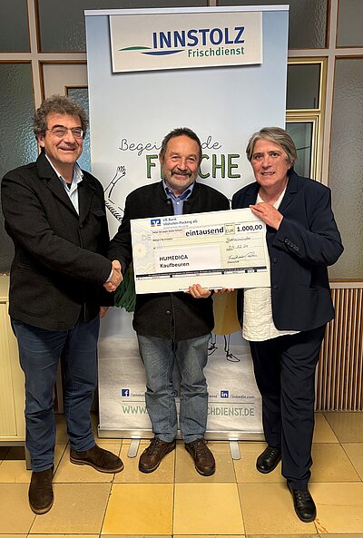 Von links: Florian Leebmann (Geschäftführer Innstolz); Matthias Haun (humedica e.V.); Cornelia Fischerauer (Gesellschafterin Innstolz);
