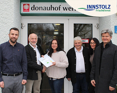 Die Firma Innstolz Frischdienst spendet 1.000 € an die donauhof-werkstätten Passau.
